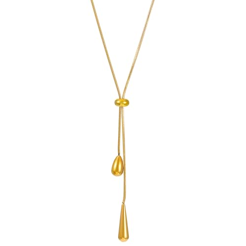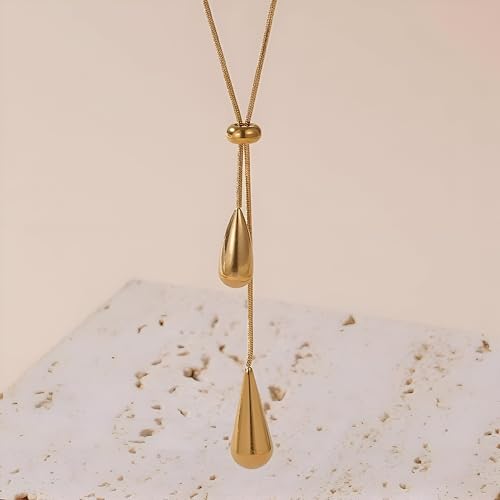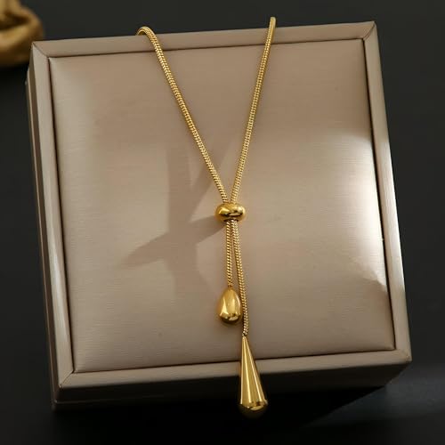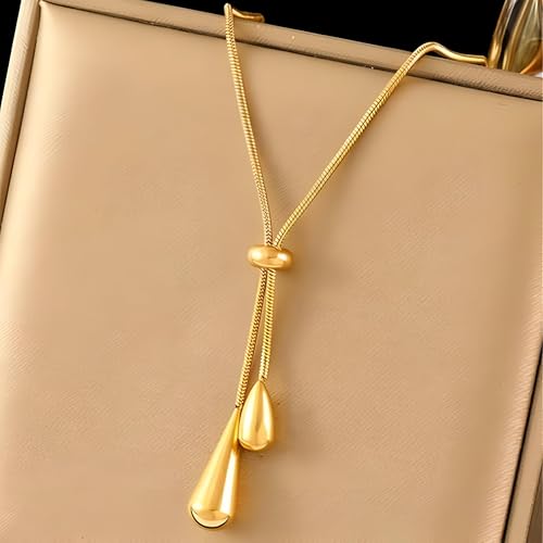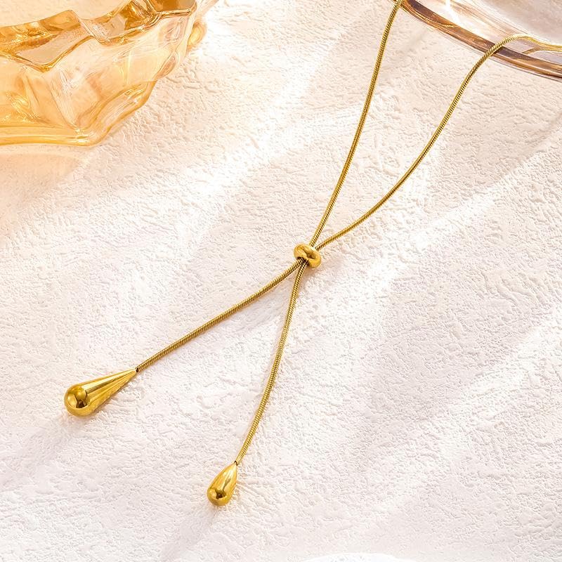 Generic - Jewelry Accessory - Gold Teardrop Pendant on Double Chain with Adjustable Slider, Chic Minimalist Statement Piece for Elegant Looks