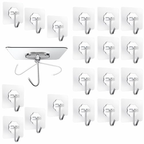 JIALTO - خطافات حائط من جيالتو، خطافات لاصقة قوية وشديدة التحمل للتعليق على الحائط، اكسسوارات المطبخ، شماعات إطار صور لاصقة (عبوة من 20 قطعة، خطاف حائط)، الحد الأقصى للوزن الموصى به: 14.969 كيلوجرام