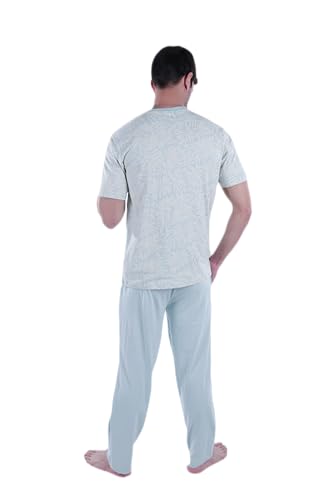 Men SS PJ WITH PLACKET White Flower