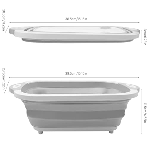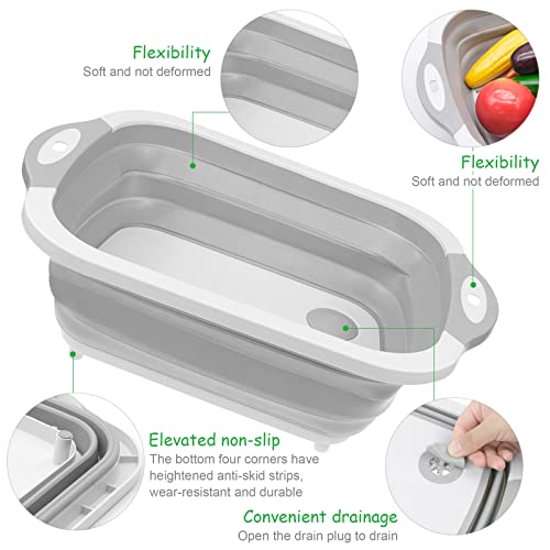 - Multifunctional: chopping board, washing up bowl and sink in one. The same chopping board can be used directly for washing and chopping vegetables/fruit. If you want to use it as a basin, there is a cap at the bottom to allow the water to drain away. At the same time, it is also a container basket