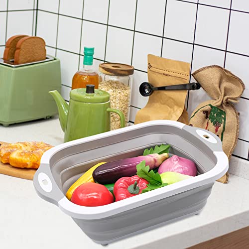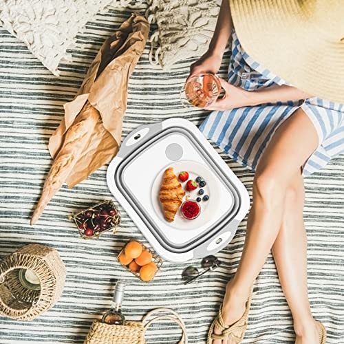 JJQHYC - Chopping Board Foldable Multifunctional Storage Basket Bowl Drain Basket Camping Chopping Board Kitchen Board