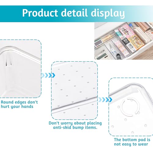 • مادة متينة: مجموعة صواني تنظيم الأدراج هذه مصنوعة من مادة بلاستيك البولي ايثيلين تيرفثالات الممتازة (PET)، وهي مادة أكثر متانة وتحمّل لتكون هذه الصواني التنظيمية ذات عمر خدمة طويل. مناسبة للاستخدام اليومي.