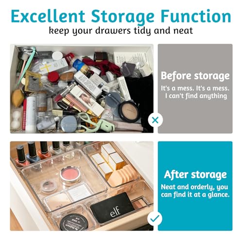 • استخدام متعدد الأغراض: لا تُستخدم فقط كصواني لتنظيم الأدراج في الحمام / المطبخ / المكتب / التسريحة / دولاب غرفة النوم، هذه الصناديق المنظمة المصنوعة من الاكريليك رائعة لتنظيم اكسسوارات الشعر والمجوهرات وكبسولات القهوة والمجوهرات وما إلى ذلك.