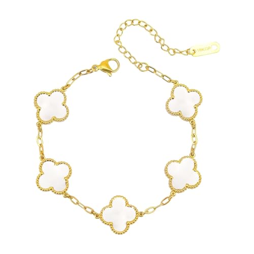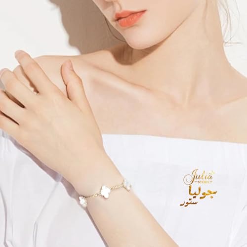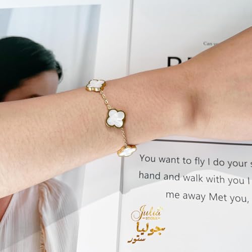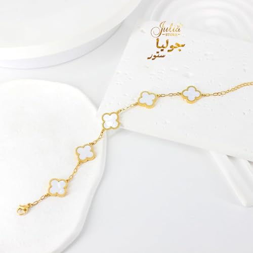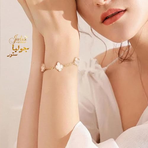 Julia Store - Julia Store 18K Gold Plated Stainless Steel Love Trendy Luxury Lucky Four Leaf Link Clover Bracelet for Women Bracelets Jewelry Gifts for Women - White