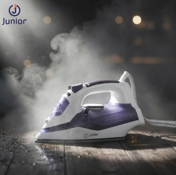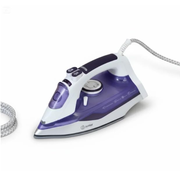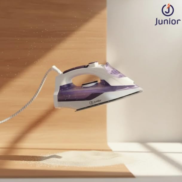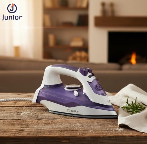 Junior Imagine The Best - مكواة بخار JU2200A من جونيور ايماجين، 2200 واط - تعزيز بخار قوي، قاعدة غير لاصقة، تحكم في درجة الحرارة قابل للتعديل ونظام مضاد للتنقيط