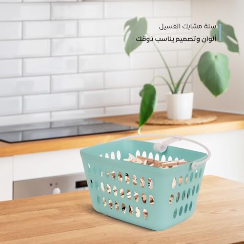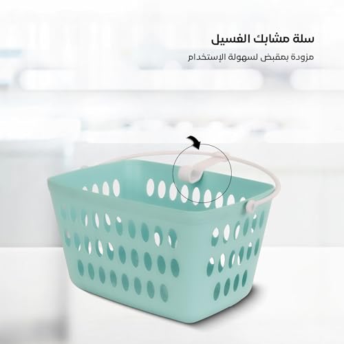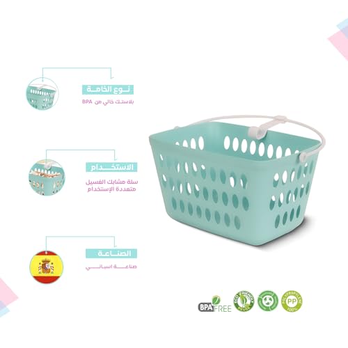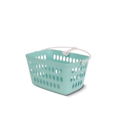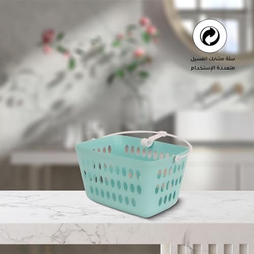 Juypal Hogar - Multipurpose Plastic Storage Basket – 22 x 14.7 x 12 cm – Durable & Lightweight with Handle – Breathable Vent Holes – Compact Organizer for Bathroom, Kitchen, or Office - Soft Green