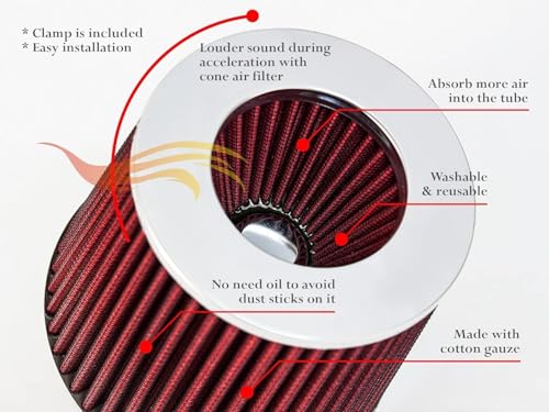 Generic - KaberEgypt 2020 Universal Replacement Engine Air Intake Filter, Conical Design, 3 Inch Diameter, Red, Universal Fit, 30x20x10 cm