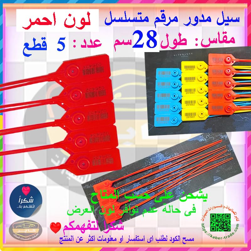 Generic - KaberTrade Self Locking Cable Ties,Seal Safety Plugs,Numbered & Sequential Ties,Securing Containers and Belongings (Round Seal Red,Length 28cm,5 Pcs,Code:9491) by KaberTrade