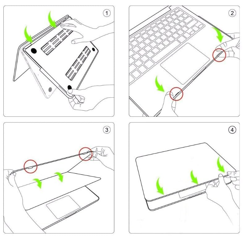 - تتضمن الحافظات البلاستيكية الصلبة الجزء العلوي والسفلي حتى تتمكن من توفير الحماية الكاملة لجهاز ماك بوك الخاص بك.
