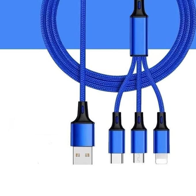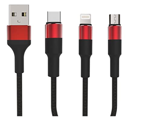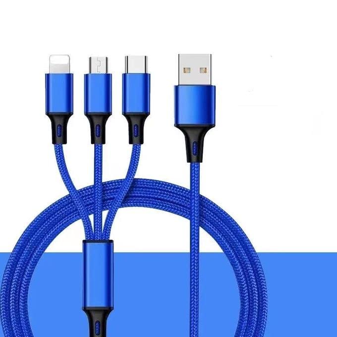 Keendex - Keendex KX 2463 3 in 1 Fast Charging and Data Transfer Cable for Type-C, Micro and iPhone, 1.2 Meters- Multi Colours, lightning