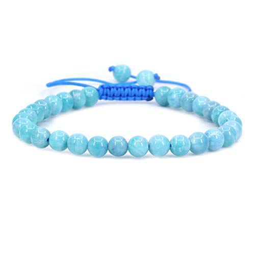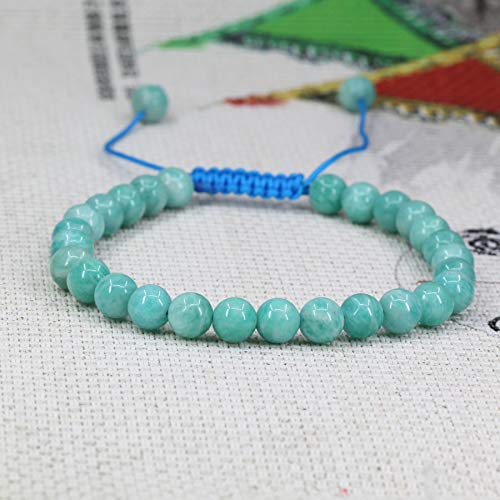 Keleny - Keleny Semi Precious 6mm Round Beads Stone Crystal Adjustable Braided Bracelets for Unisex (7-9in, Amazonite)