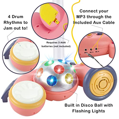 - HOURS OF ENTERTAINMENT – Young children and even toddlers will love singing on this adorable pink karaoke microphone. The disco ball and included beats and tunes adds excitement and will be sure to keep your child entertained for hours.