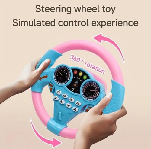 Generic - Kids Interactive Steering Wheel Toy, 20 cm, LED Dashboard Display, Sound Effects, Blue and Pink