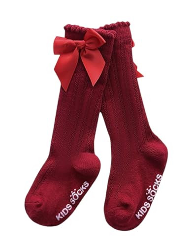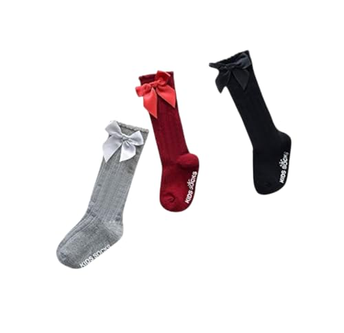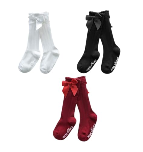 Generic - Kids' Knee-High Socks with Bow Detail, 3 Colours Pack - White, Black, Burgundy size M from 12-36 months
