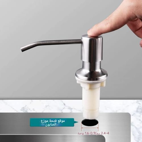 - This built-in sink soap dispenser is crafted with a robust 304 stainless steel press pump head and durable PE plastic inner parts. Available in sleek silver brushed and bold black finishes, it is designed to resist rust and corrosion, making it both stylish and long-lasting for any kitchen or commercial space.