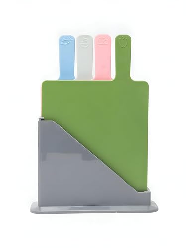 Generic - مجموعة ادوات تقطيع للمطبخ - اربعة الواح بلاستيكية مرمزة بالألوان مع ايقونات طعام وحامل، مثالية لفصل الفواكه والخضروات والاطعمة المطبوخة بسهولة