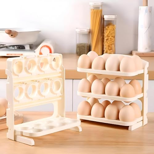 - This collapsible, three-layer plastic egg holder features a modern rotating design that enhances portability, making it easy to carry and access eggs individually by flipping layers, which simplifies handling and reduces the risk of breakage.
