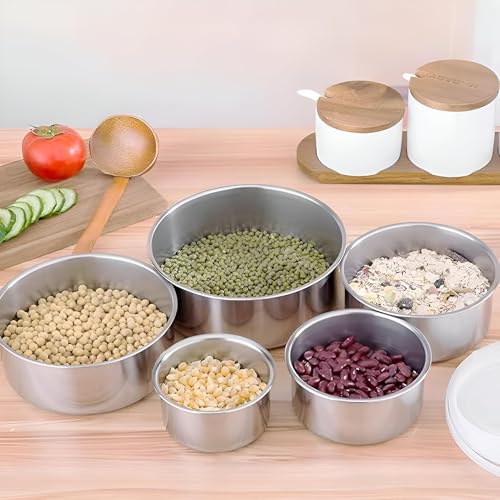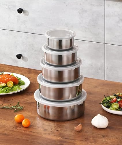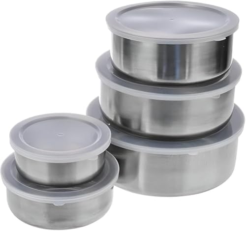 - This five-piece food storage set is made from high-quality stainless steel, ensuring durability, safety, and health for all your food storage needs. The blend of materials guarantees that the containers will stand the test of time, making them a reliable choice for keeping your food fresh longer.
