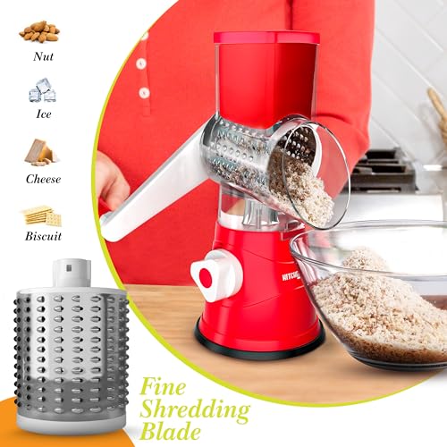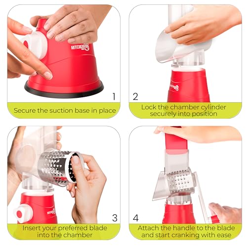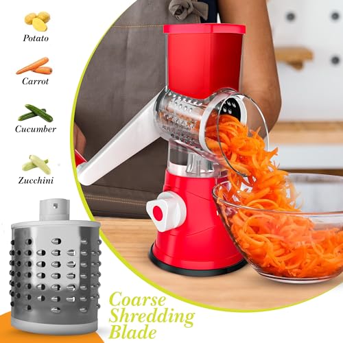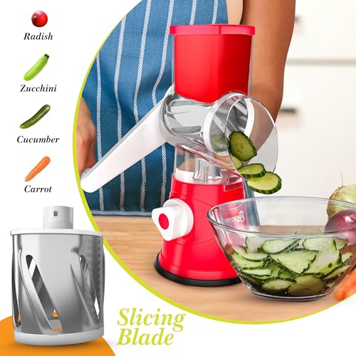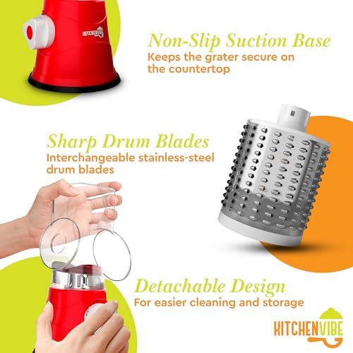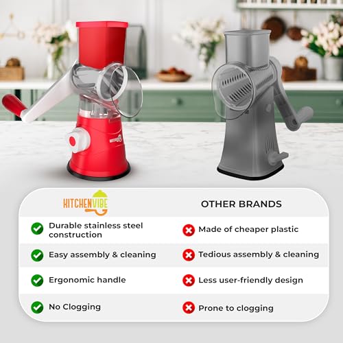 KitchenVibe - مبشرة جبن دوارة من كيتشن فايب (3 شفرات، بلون أحمر)