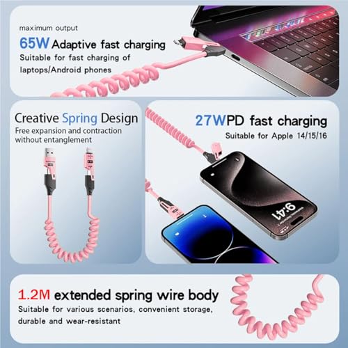 - ⚡️【شحن ونقل بيانات عالي السرعة】استمتع بالشحن فائق السرعة مع كابل البيانات السريع المعدني القابل للتحويل 4 في 1، الذي يمكنه توفير طاقة تصل إلى 240 وات، مما يضمن شحن أجهزتك بنسبة تصل إلى 50% خلال 30 دقيقة فقط، واستمتع بمزامنة بيانات فعالة بسرعات مناسبة لنقل الملفات والصور والفيديو بسرعة.