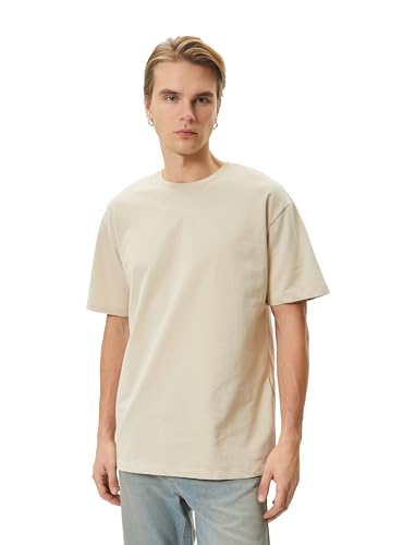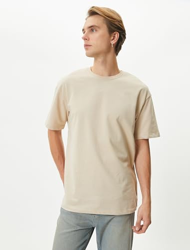 KOTON - Koton Cotton Loose Fit Crew Neck Short Sleeve Basic T-Shirt for Men's 057 Beige, XL