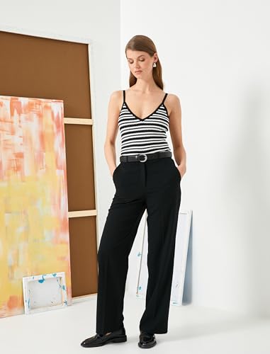 KOTON - Koton Crochet Strappy V-Neck Tank Top for Women, Small, 9S9 Black Stripe