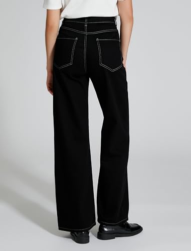 KOTON - Koton Extra Wide Leg High Rise Denim Trousers - Bianca Jeans for Women, Size 34, Black (999)