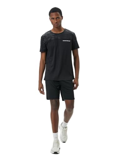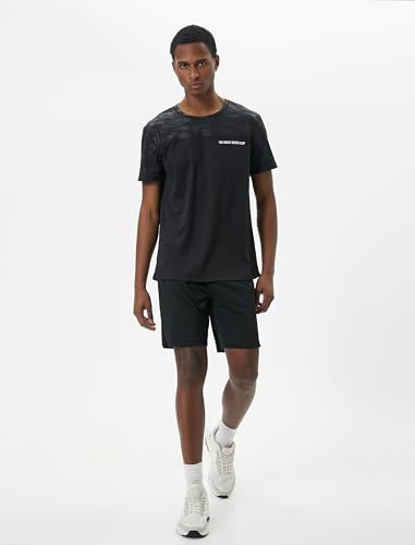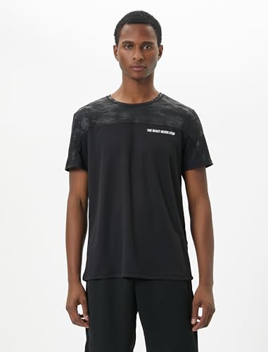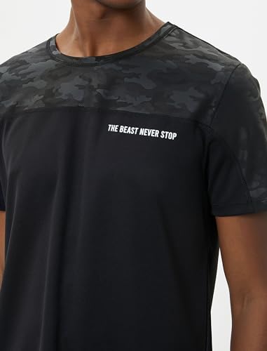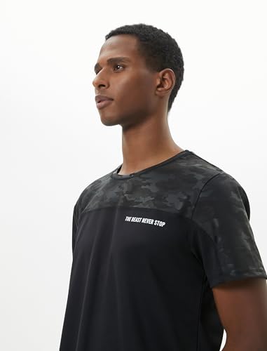 KOTON - KOTON mens Crew Neck Slogan Printed Camouflage Detail Sport Tshirt