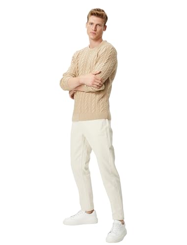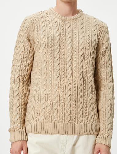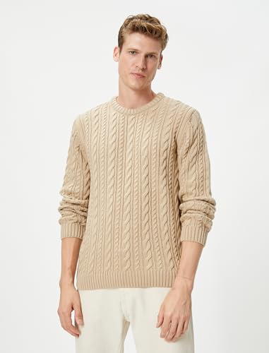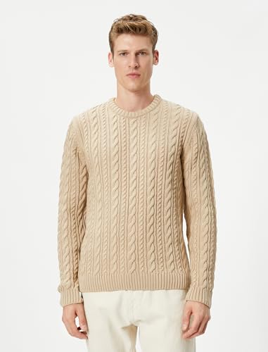 KOTON - KOTON mens Crew Neck Textured Knitted Long-Sleeves Pullover