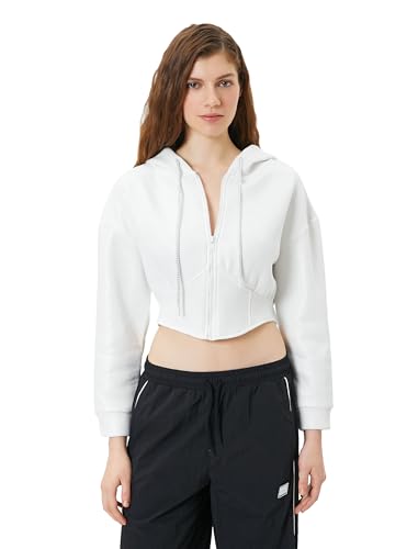KOTON - KOTON womens Crop Hooded Zip-Up Corset Detail Sweatshirt