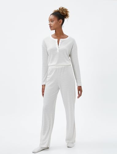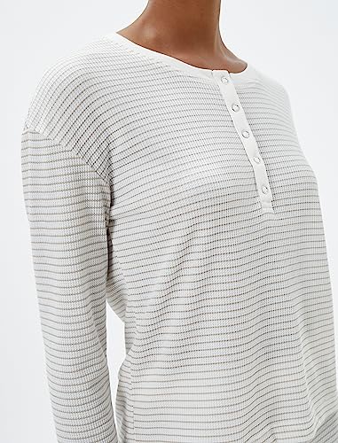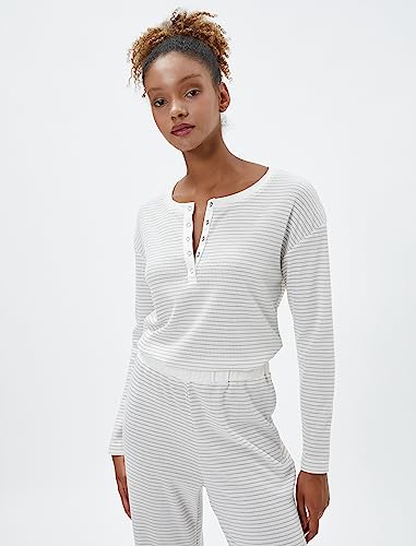 KOTON - KOTON womens Long Sleeve Pajama Top Button Detail Pajamas Top