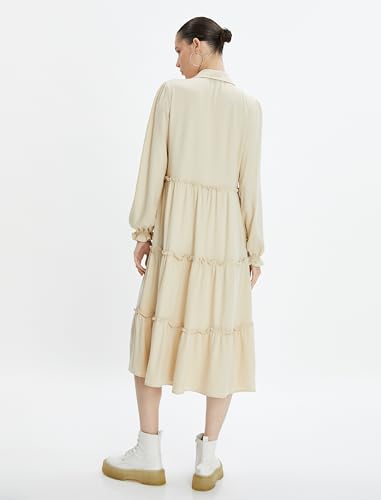 KOTON - KOTON womens Maxi Long Sleeve Neck Button Detail Viscose Fabric Dress