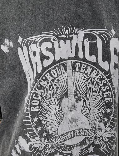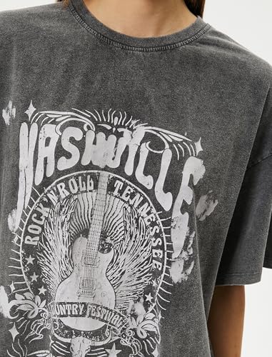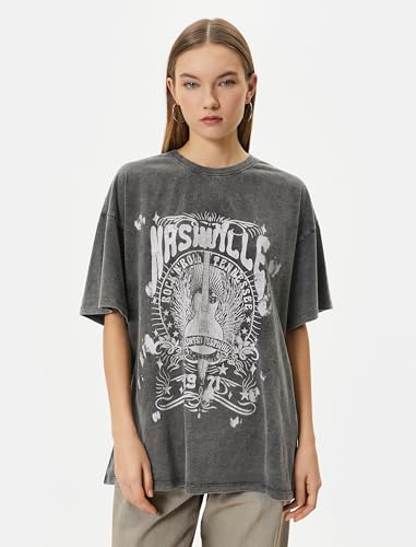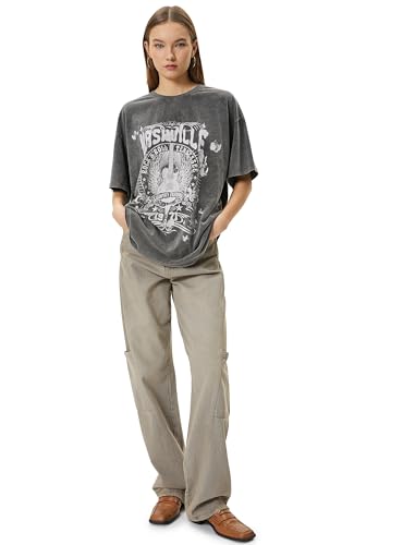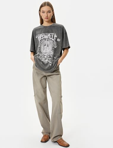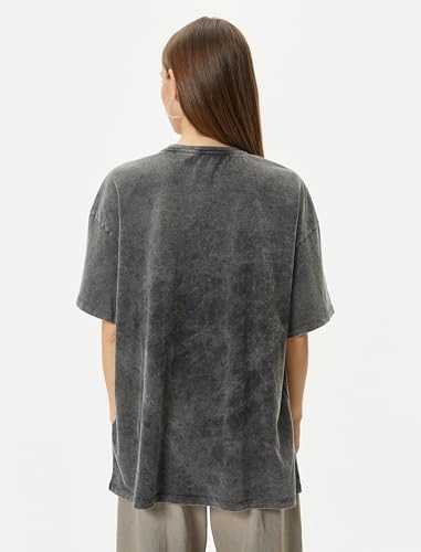 KOTON - KOTON womens Relax Fit Washed Effect Printed Short Sleeve Crew Neck Tshirt