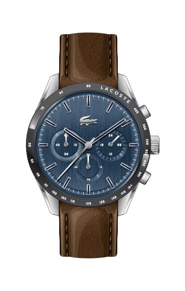 Lacoste - Lacoste Boston Men's Quartz Chronograph Stainless Steel Case With Brown Leather Strap, Black/Black (Model: 2011093)