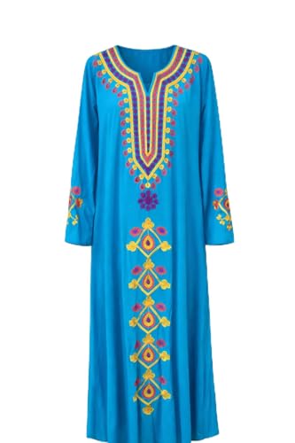 Generic - Lamasaty Women’s Embroidered Maxi Abaya – Turquoise Modest Dress with Multicolor Ethnic Embroidery (L)