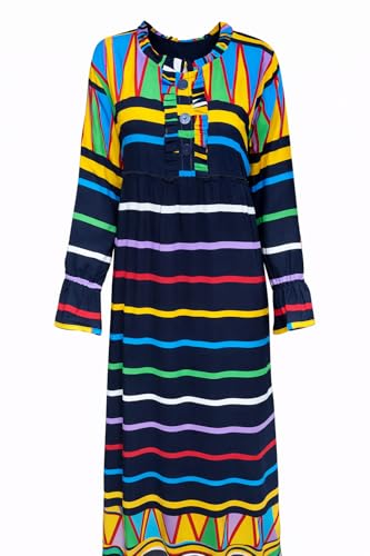 Generic - Lamasaty Women’s Multicolor Striped Maxi Dress – Navy Modest Abaya with Rainbow Print & Button Detail (L)