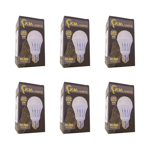 Lamps - Lamps LED Bulb 6W – 6500K Daylight White, Energy-Efficient, 30,000 Hours, Aluminum Body (Pack of 6)