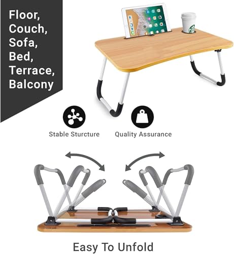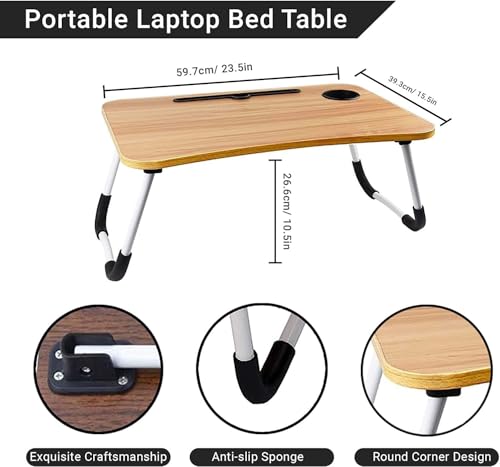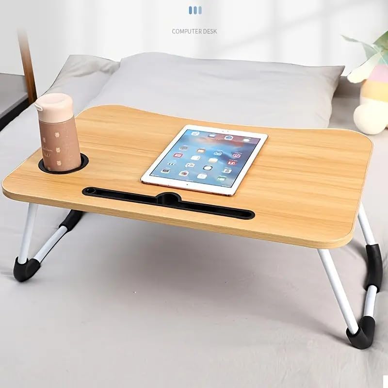 - Scientific design- Curved desktop edge, curved tabletop, ergonomic design, protective layer around the desktop, so you can feel comfortable when using. The desktop card slot design makes it easy and convenient to place on mobile phones, iPads, books and magazines. The anti-slip and W-legs are stable and the legs are folded to save space and flexibility. (Please note the table legs can be folded but the height cannot be adjusted.)