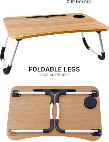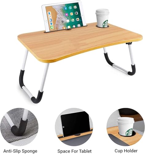 Goldedge - Laptop Bed Table Lap Standing Desk for Sofa Breakfast, Laptop Desk Folding Coffee Tray Notebook Stand Reading Holder for Couch Floor Kids(60 x 40 cm) (Brown)