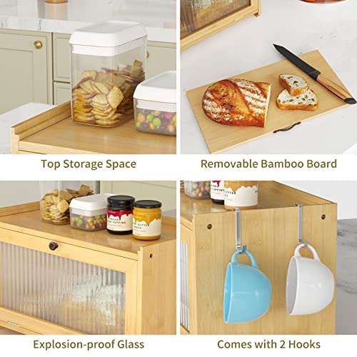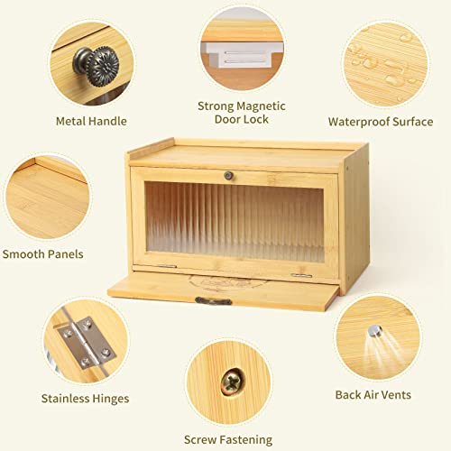 xinyoec - Large Bread Box for Kitchen Countertop, Bamboo Bread Storage Container with Cutting Board and Clear Plexiglass Window, Bread Bin, Farmhouse Bread Box, Bread Holder For Kitchen Counter (Self-Assembly)