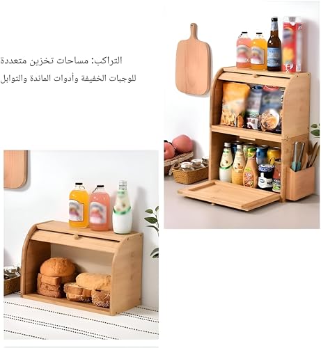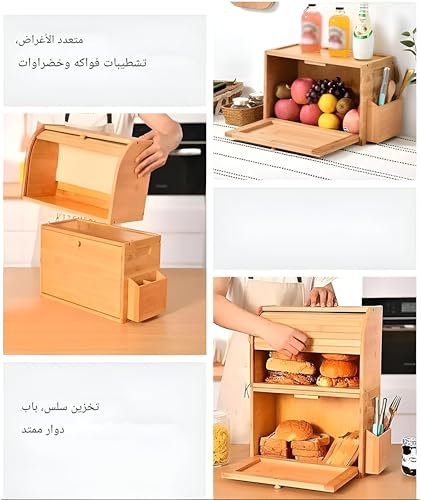 - **Product Details - Style & Dimensions:** Available in multiple sizes to suit various needs, with options including A: 40x27x16cm/15.7x10.6x6.2 inches, B: 35x20x14cm/13.7x7.8x5.5 inches, and a 2-layer option measuring 43x18x50cm/16.9x7x19.6 inches. This bread box is presented in an American style and is constructed from high-quality bamboo.