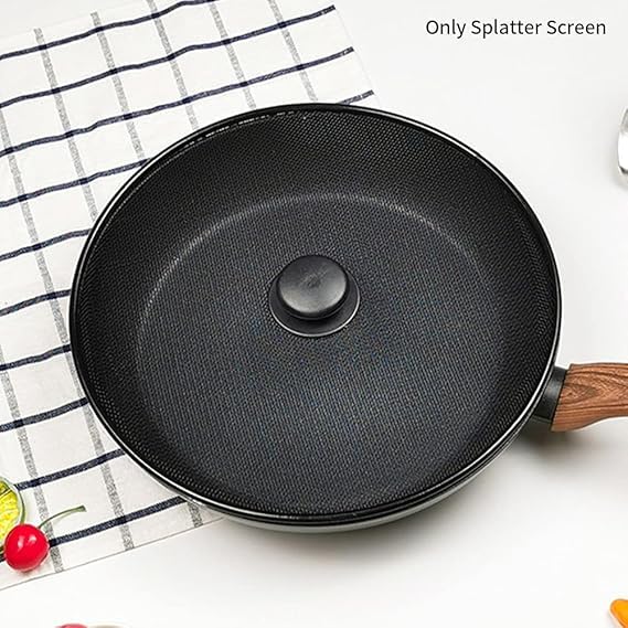 - Protect your kitchen walls and surfaces from food splatter when cooking with a frying pan splatter guard.