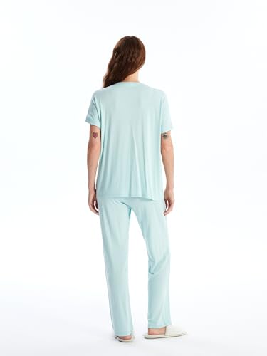 LC WAIKIKI - طقم بيجامة مطرز برقبة V وأكمام قصيرة للنساء من ال سي وايكيكي