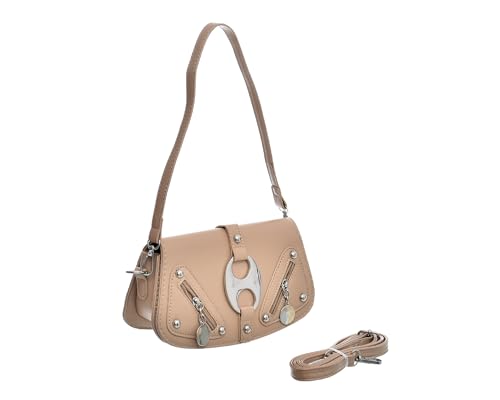 Generic - Leather Medium Handbag Amazing Design With Metal Clip And Leather Strap Can Be Controlled In Length For Women - Beige Silver