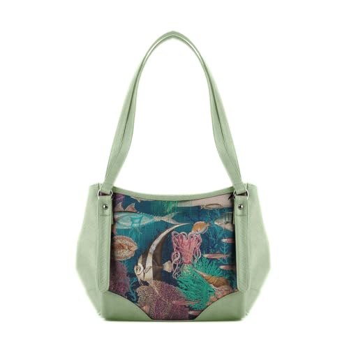 Generic - Leather Tote Bag, Mint Green with Ocean Life Print, Decorative Sea Pattern