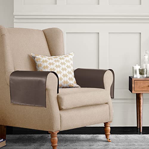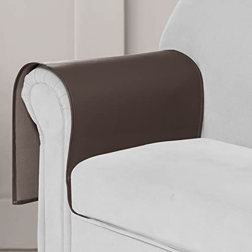 Joywell - Leatherette Armrest Covers for Armchair and Sofa, Faux Leather Chocolate Covers for Living Room Accessories Home Decor, Upholstery Fabric Arm Protectors 2 Pcs, Dark Brown Coffee
