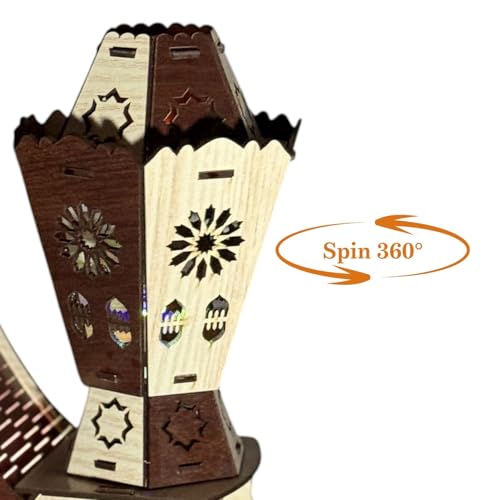 - 360° Rotating Lantern Base – The Ramadan lantern spins smoothly 360 degrees on a stable base, adding dynamic movement and making the decoration visually appealing from every angle.