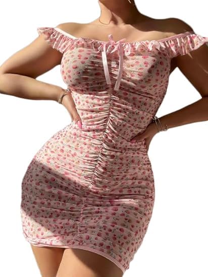 Generic - Lingerie dress with an open shoulder design, with an open neck Design, Pink and White