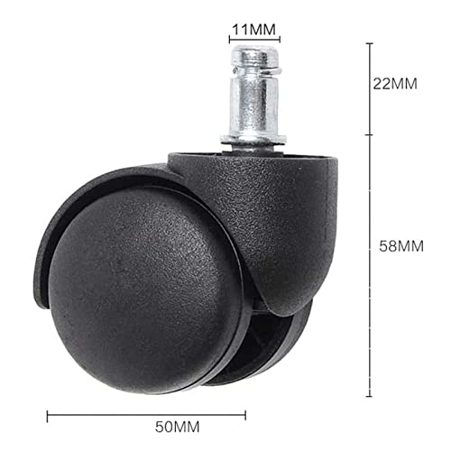 LIOONS - عجلات دوارة مرنة مقاس 50 ملم من ليونز، عجلات دوارة بلون أسود هادئ، عجلات مطاطية عالية الأداء للمكتب وكرسي الترولي، عجلات عملية