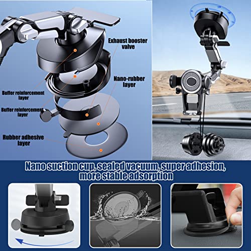 • 📱【Durable Material & Strong Suction Cup】Car phone holder mount for dashboard/ windshield is made of high quality ABS, durable and strong, not easy to scratch, not easy to break, can be used for a long time. Upgraded five-layer nano-gel suction cups form a strong vacuum, up to 22 pounds suction force firmly grips the windshield, the suction cups are washable and reusable. Fashionable appearance design, simple and practical. Strong suction, super stable, strong and safe protection.